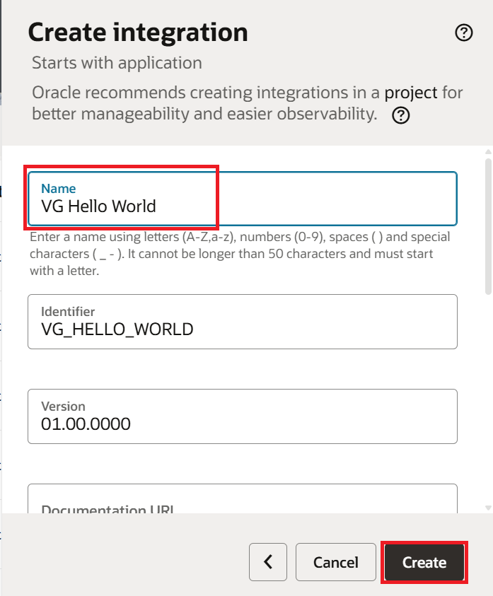 Enter the Name as "VG Hello World" and click Create: