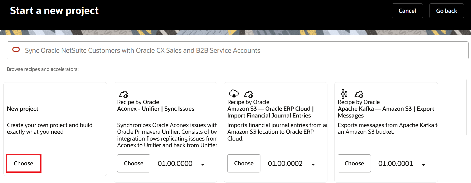 - Click on "Choose" under "New project"