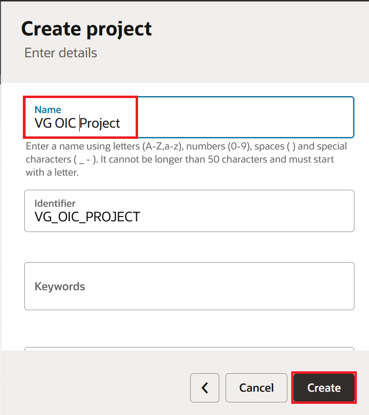 - Enter Project Name and click on Create (Identifier gets auto-generated)