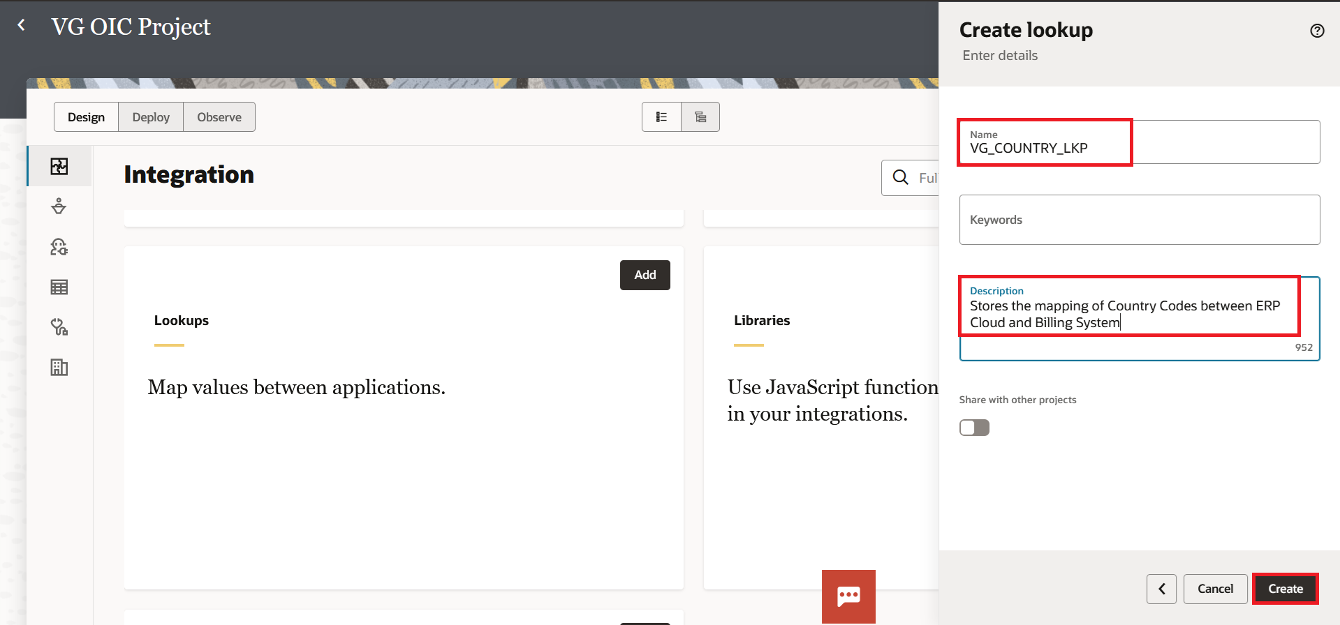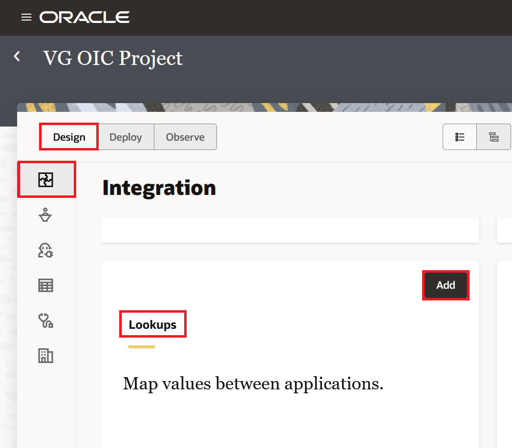 You can create lookups at two levels in OIC Gen3: outside a project (globally accessible) or inside a project (scoped to that project only). Let us first walk through how to create a lookup outside a project.