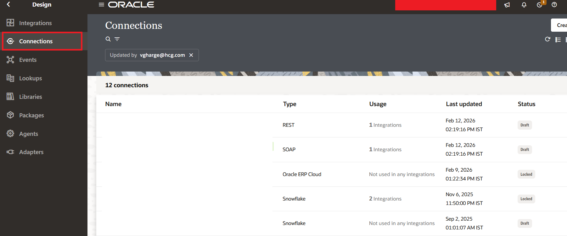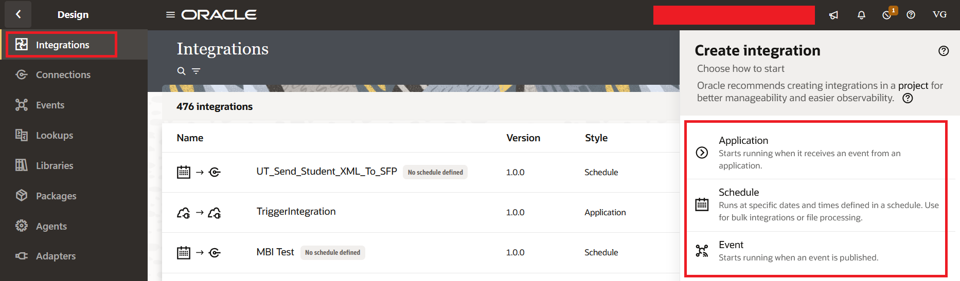 Once the Connections are configured, we use those connections to build Integrations. Oracle provides three Integration Types: