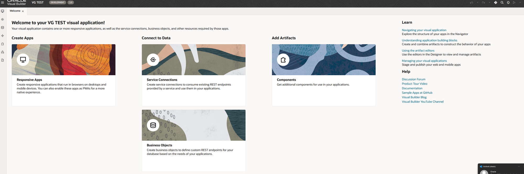 Note: Visual Builder only supports Google Chrome and Microsoft Edge Browsers. It does not support Mozilla Firefox