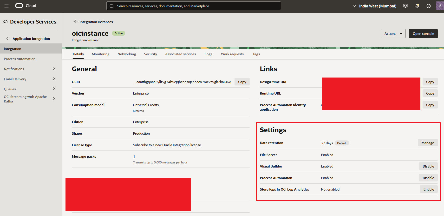 This was formerly known as Process Cloud Service or PCS but now renamed to Process Automation. We need to enable this feature to use it. When you want to provide a form which, once filled, should go for approval or you need an approval step in between the Integration then you use Process Automation.